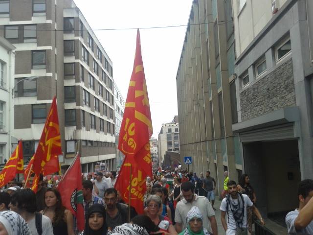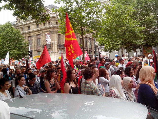 Celle-ci était organisée par le MCP (Mouvement citoyen Palestine) autour de Nordine Saidi, récemment candidat indépendant aux élections sur la liste Islam. Les organisateurs avaient refusé que d’autres organisations rejoignent leur plate-forme. Ils ont provoqué un conflit avec tout le mouvement de solidarité avec la Palestine et ont maintenu autoritairement le monopole sur la manifestation d’hier…grâce à Facebook. Résultat : le mouvement de solidarité avec la Palestine qui a créé une large plate-forme pour Gaza, a par contre organisé ses propres manifestations unitaires, mercredi passé au Ministère des affaires étrangères et le dimanche 27 juillet. Après avoir cassé le mouvement en deux, les organisateurs ont délibérément cherché à donner une coloration religieuse à la manifestation, en chantant des slogans religieux (sunnites, plus précisément) au micro, dès le début de celle-ci. Ces slogans, dans la manifestation, sont compréhensibles, particulièrement dans une situation aussi terrible que ce que subit Gaza aujourd’hui, n’ont pourtant pas été dominants, et les groupes islamistes sont restés marginaux. Et on pouvait être frappé par la présence plus faible que d’habitude des bruxellois.e.s non-musulman.e.s, puisque la mobilisation s’est principalement faite via Facebook, dans les quartiers populaires et les mosquées, et sans le soutien de tout le mouvement de solidarité avec la Palestine. Il est très grave qu’un tout petit groupe cherche ainsi à récupérer la solidarité légitime et spontanée de milliers de personnes avec le peuple palestinien.Il est encore plus grave qu’il divise et affaiblisse la mobilisation, tant du point de vue de son contenu que du nombre, en imposant des slogans qui impliquent une vision acritique du Hamas.Il est carrément scandaleux et inacceptable que ce petit groupe utilise la manifestation d’hier sous leur contrôle comme rampe de lancement pour une deuxième manifestation le 25 juillet, deux jours avant la grande manifestation nationale et large du mouvement de solidarité avec la Palestine soutenue par des dizaines d’organisations. Pire encore, celle du 25 juillet est appelée en référence à la journée mondiale Al Quds, lancée par la dictature islamiste iranienne en 1979 pour se donner une légitimité antisioniste. Pour la LCR-SAP, il est impossible de cautionner et soutenir une telle attitude et un tel appel à manifester, qui prend en otage le peuple palestinien au service d’un régime réactionnaire qui collabore au massacre de 200000 syrien.ne.s. Nous appelons les organisateurs du 25 à arrêter immédiatement cette politique de division et à rejoindre la plate-forme « Urgence Gaza ». La solidarité avec la Palestine n’est ni une question de religion, ni de couleur, mais simplement une question d’humanité. Mettons ensemble tout en oeuvre pour que le mouvement soit le plus massif, démocratique et pluraliste possible, à l’image de ce que la manifestation historique de Londres a montré.